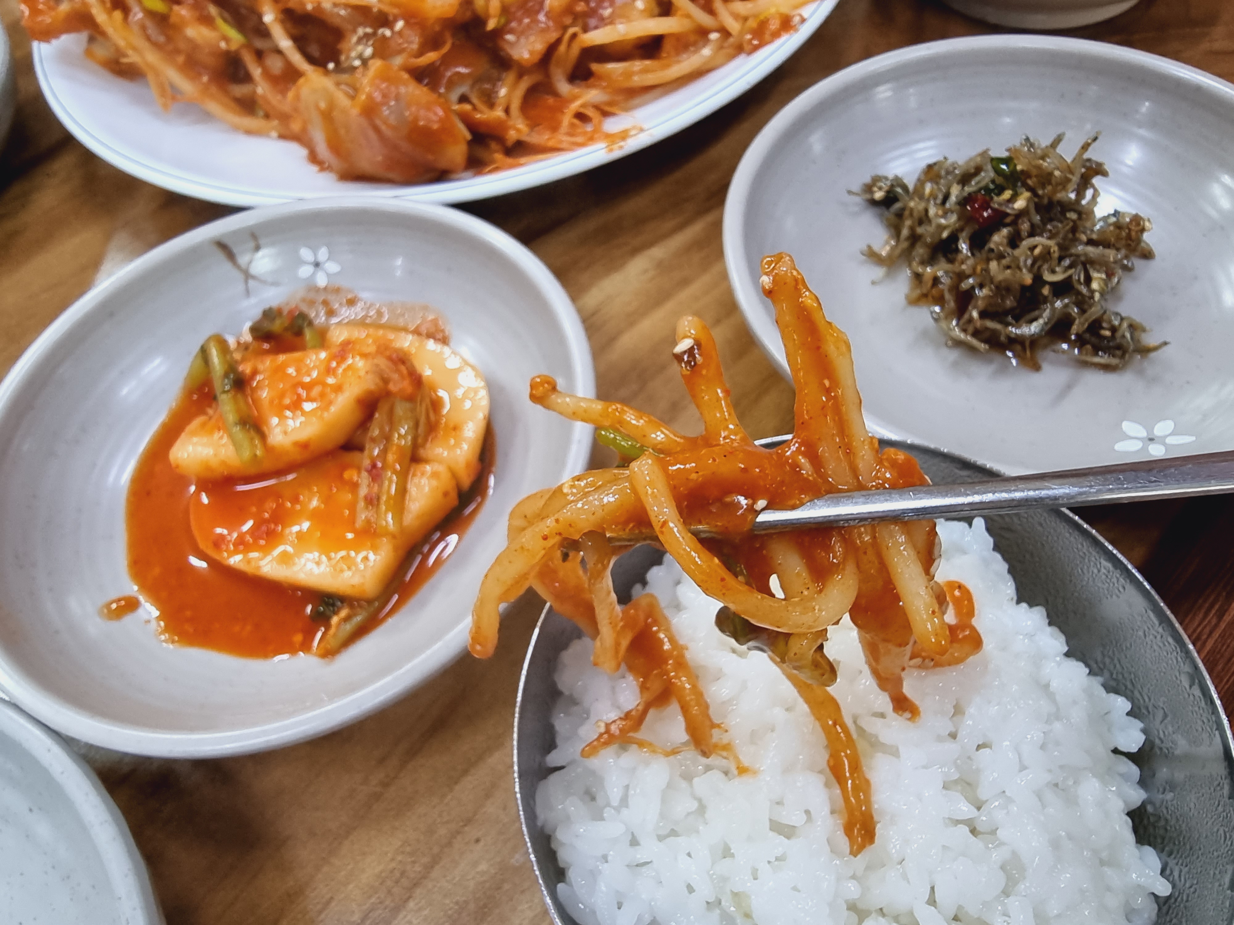 일단 매콤한 양념에 아삭아삭하게 잘 볶아진