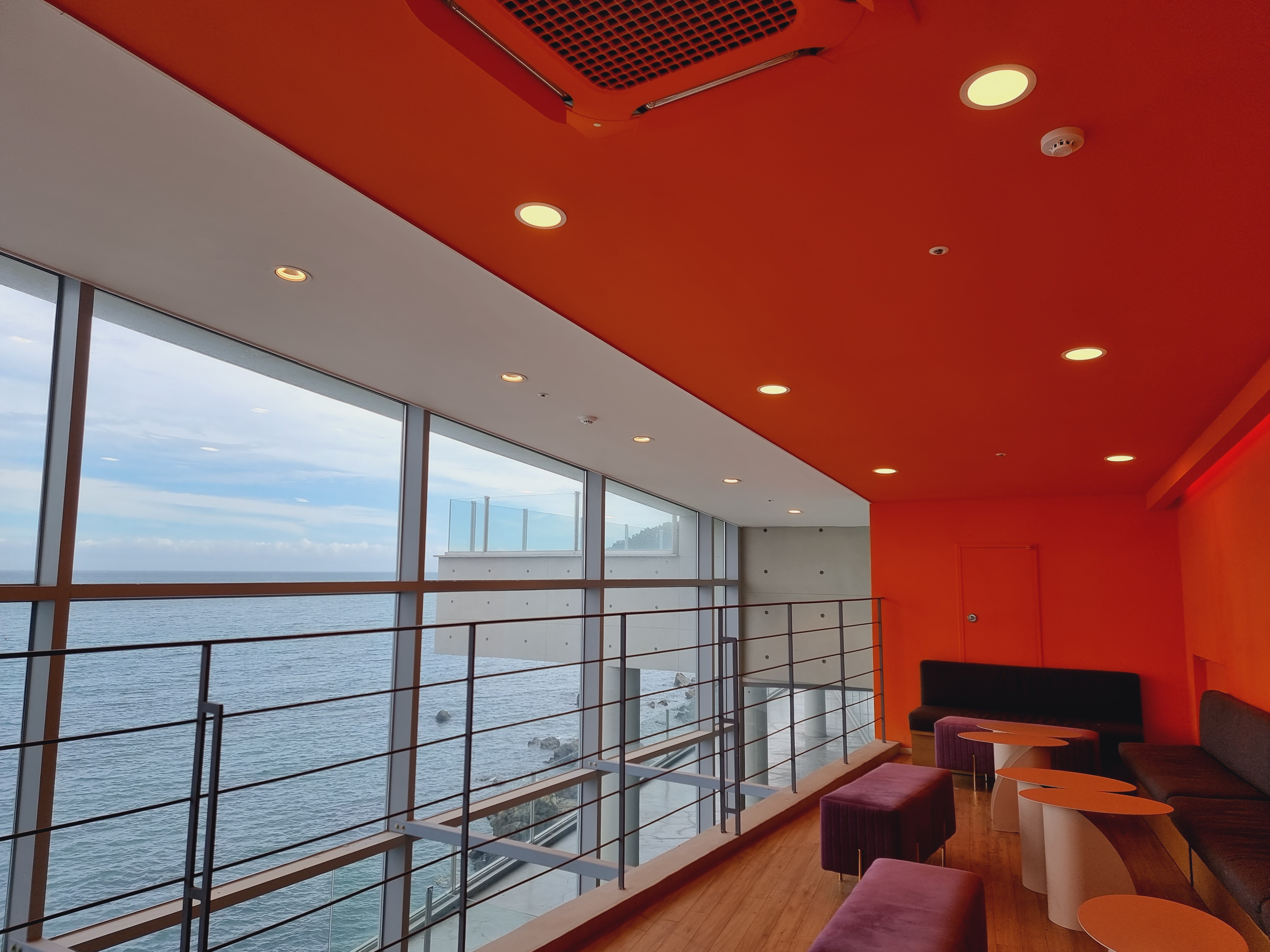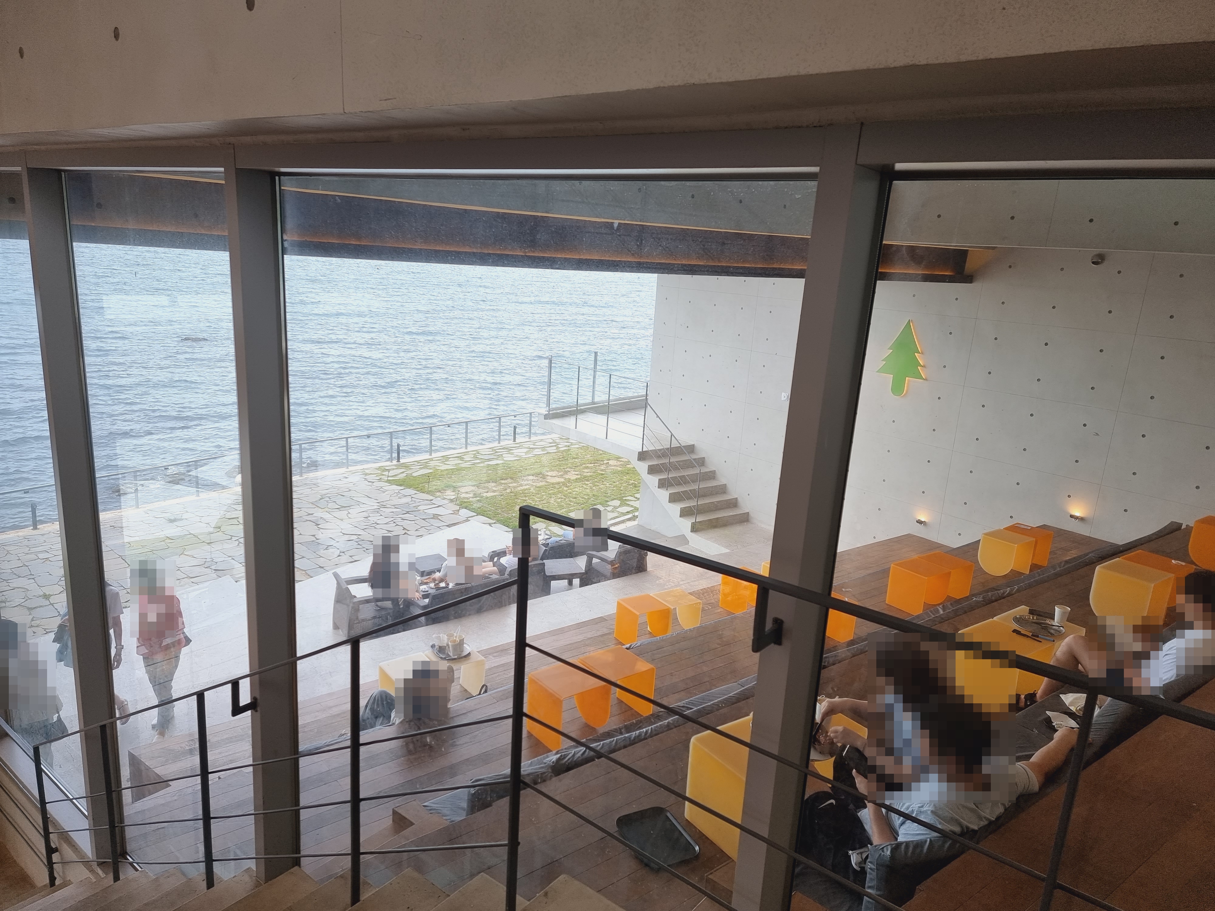 통유리 앞에 바다 조망을 볼 수 있게
