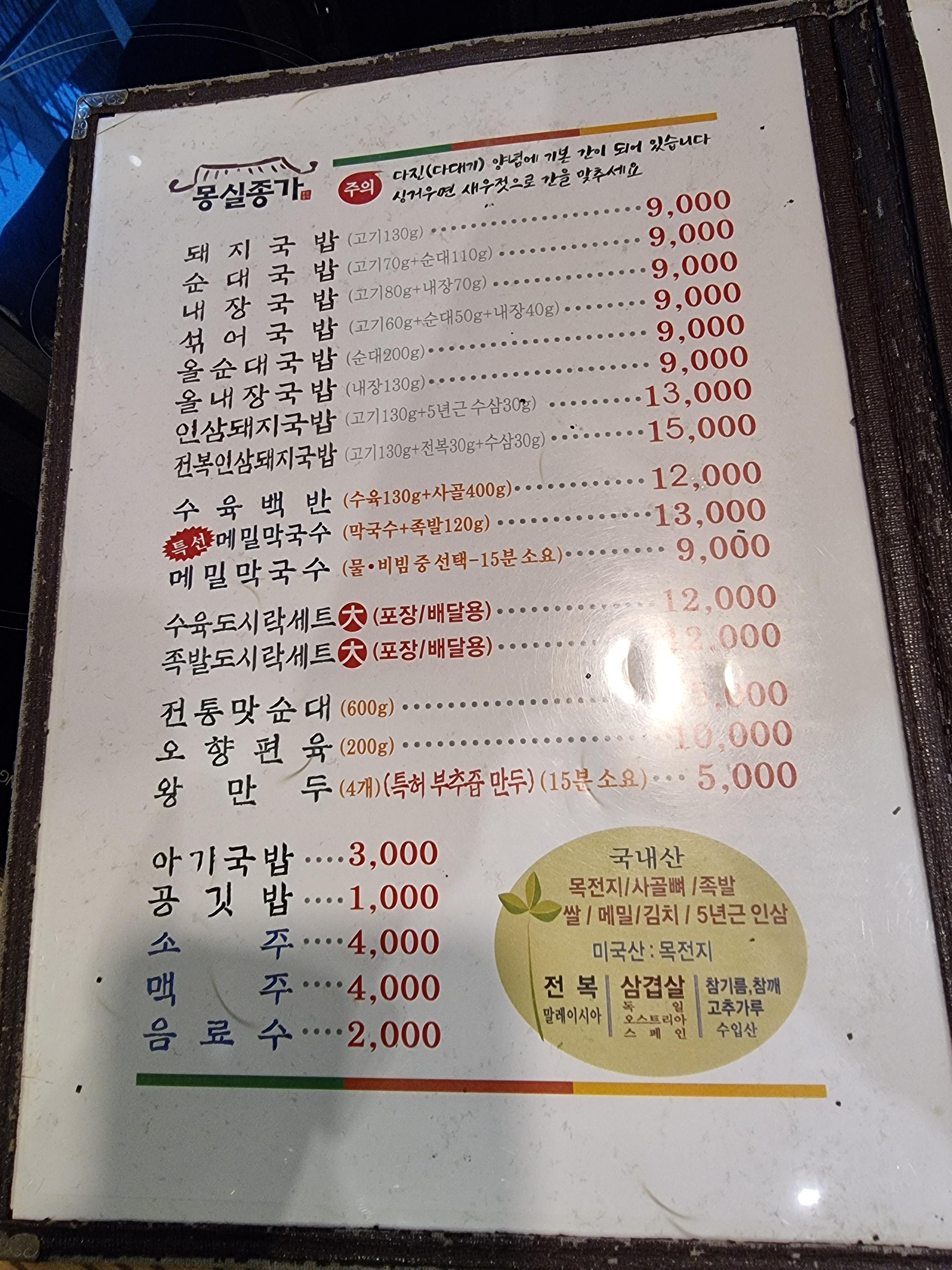 막국수와 국밥, 수육, 만두, 순대 등으로