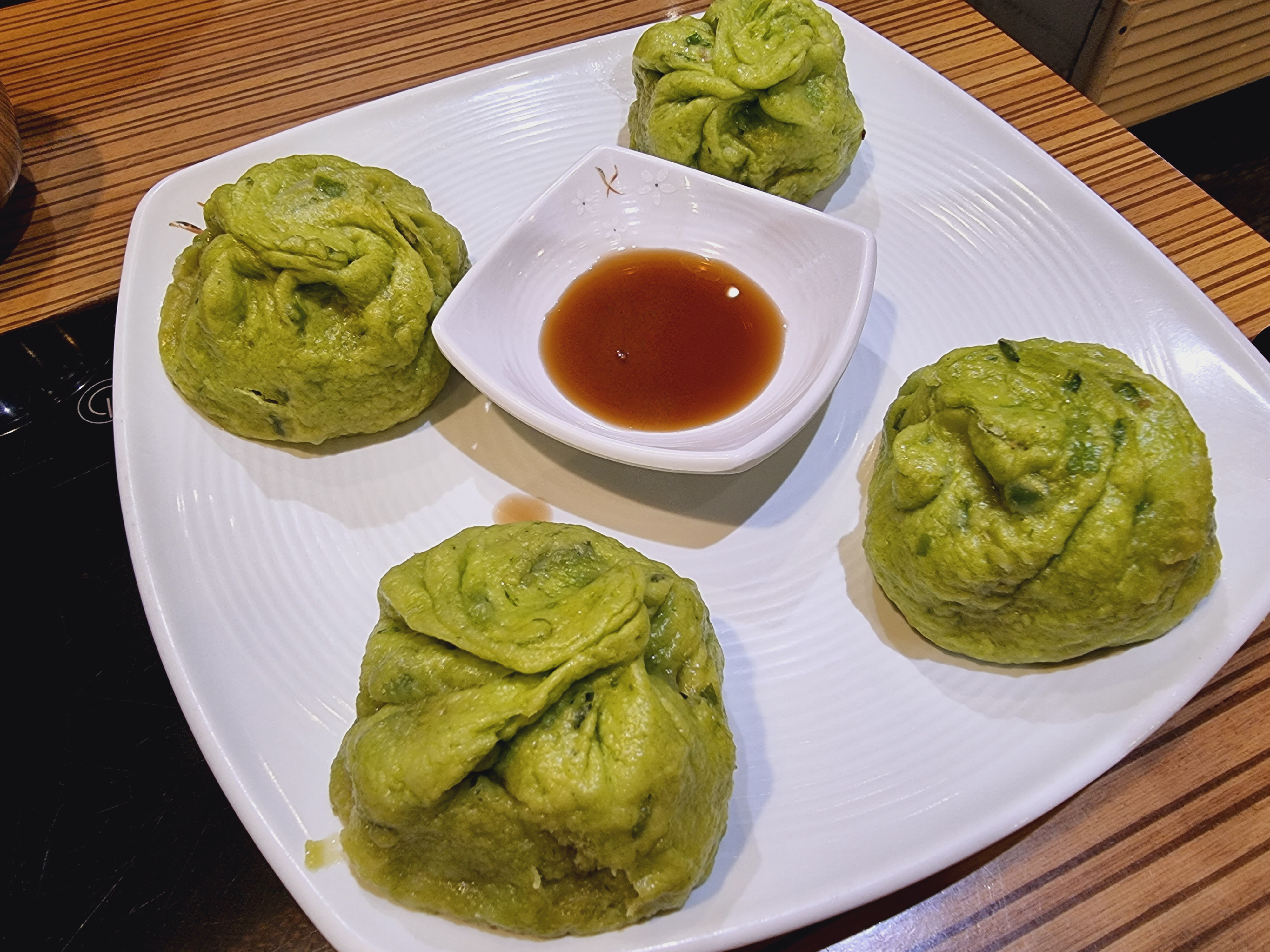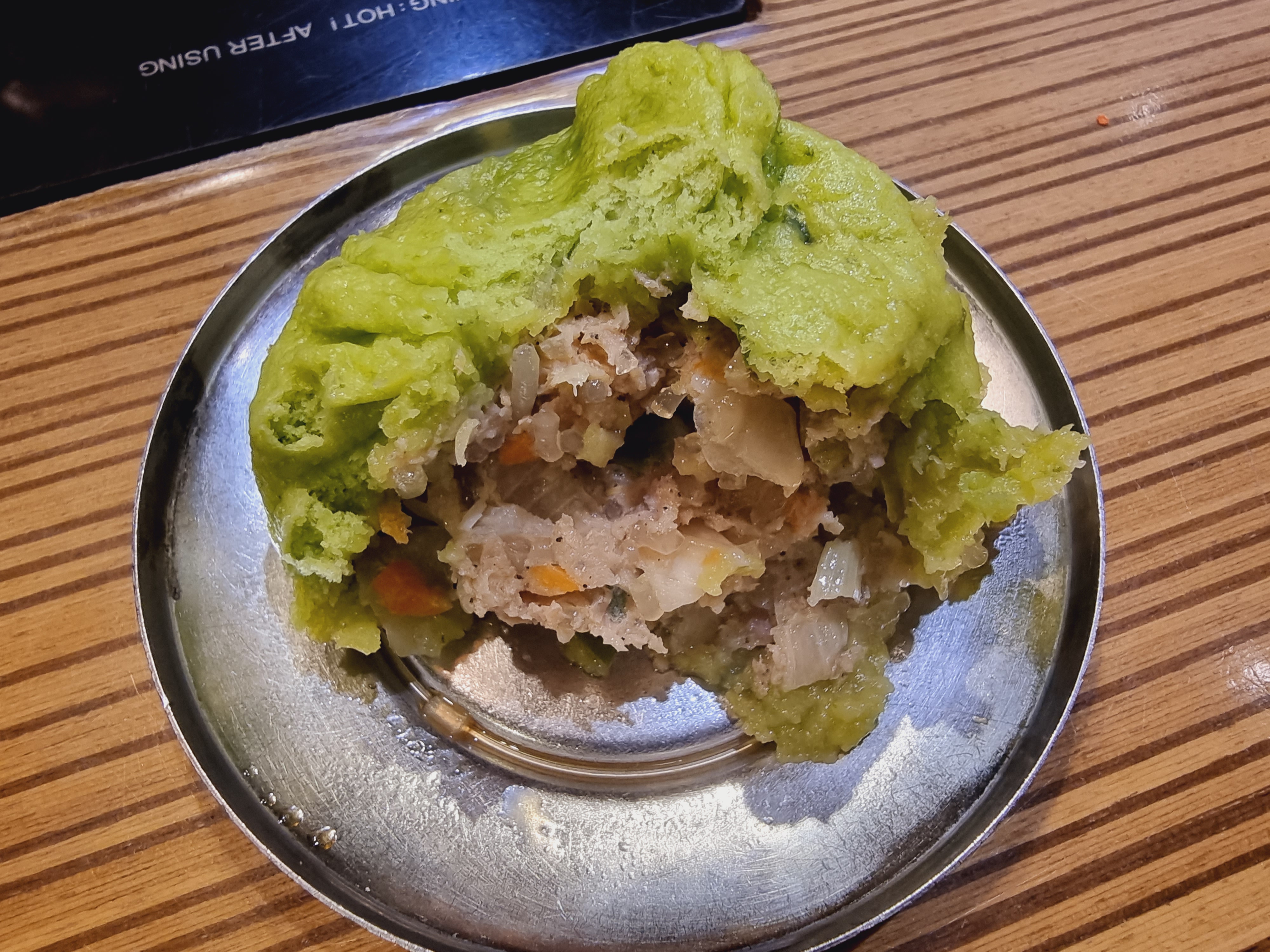 특이한 맛이었어요. 만두피가 초록색이라