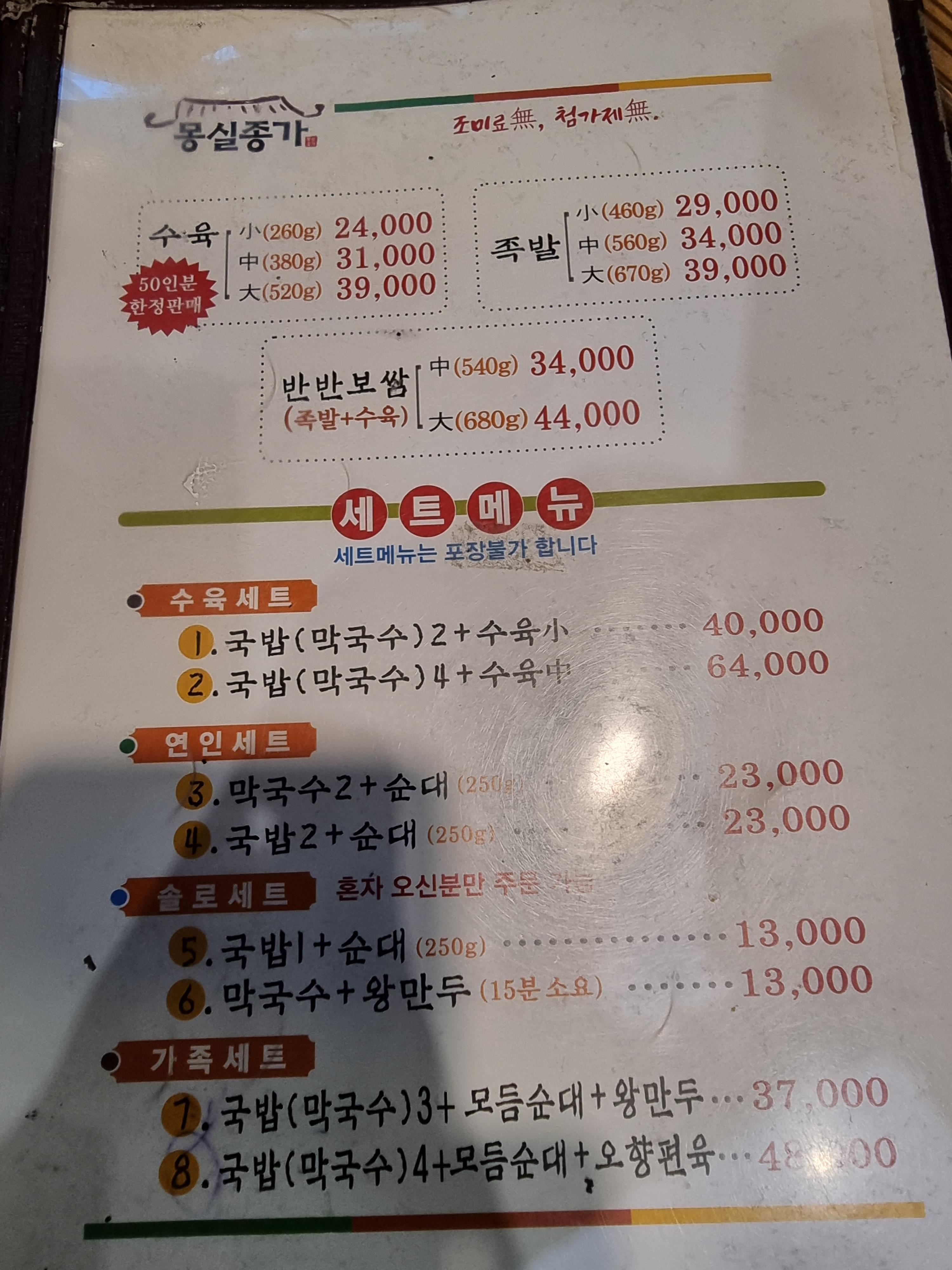 구성한 세트 메뉴도 있었지만 저희는