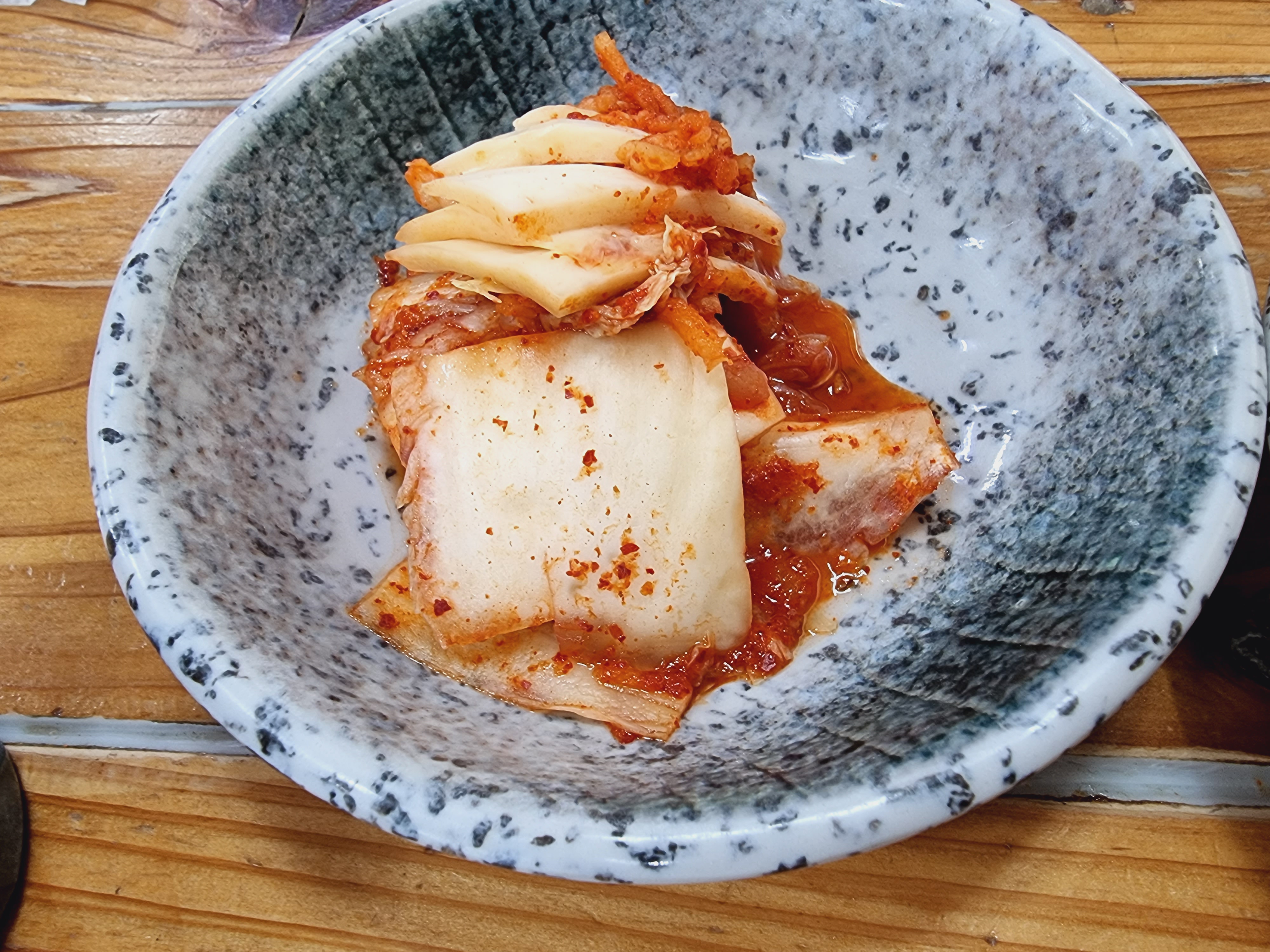 아삭아삭한 김치와 깍두기를 곁들여가며