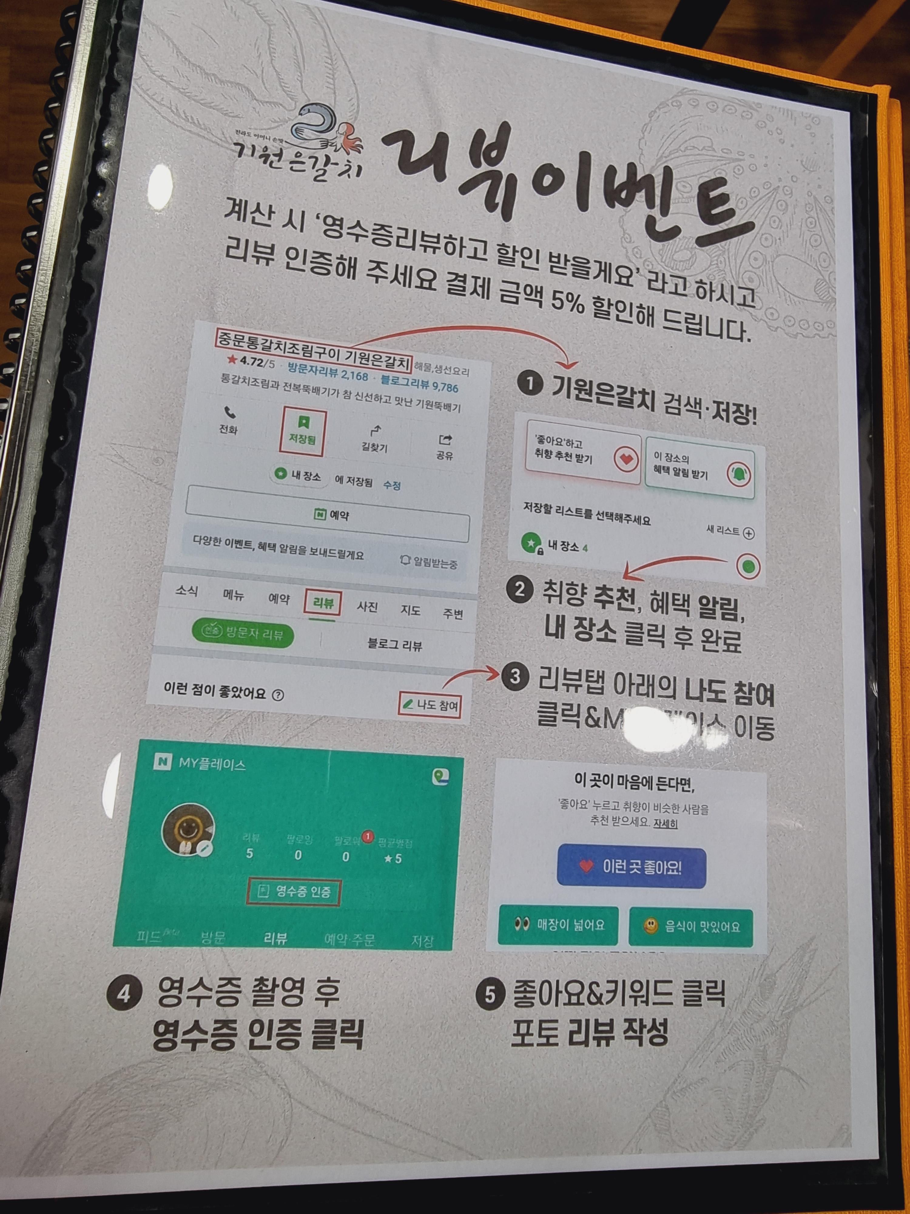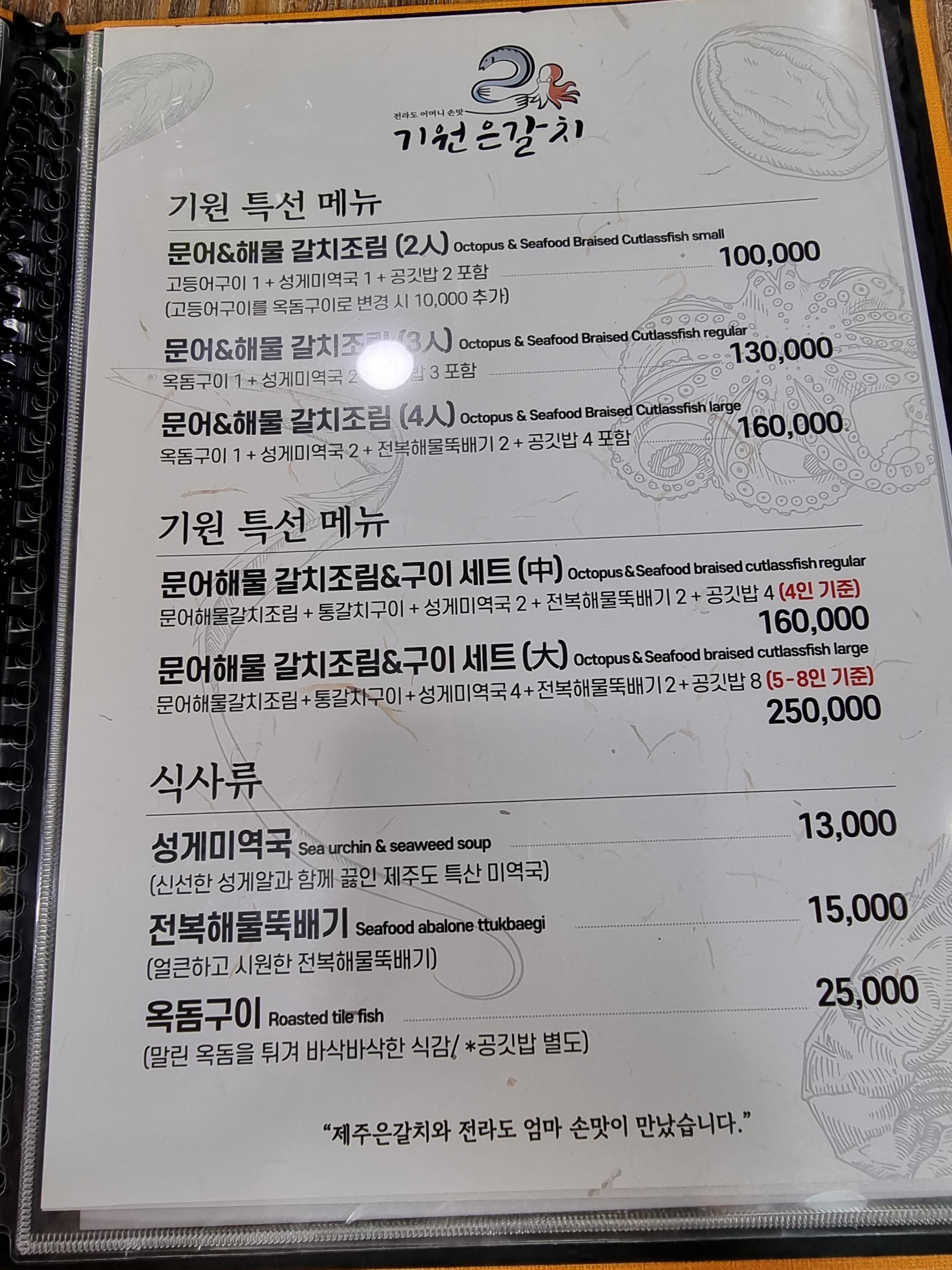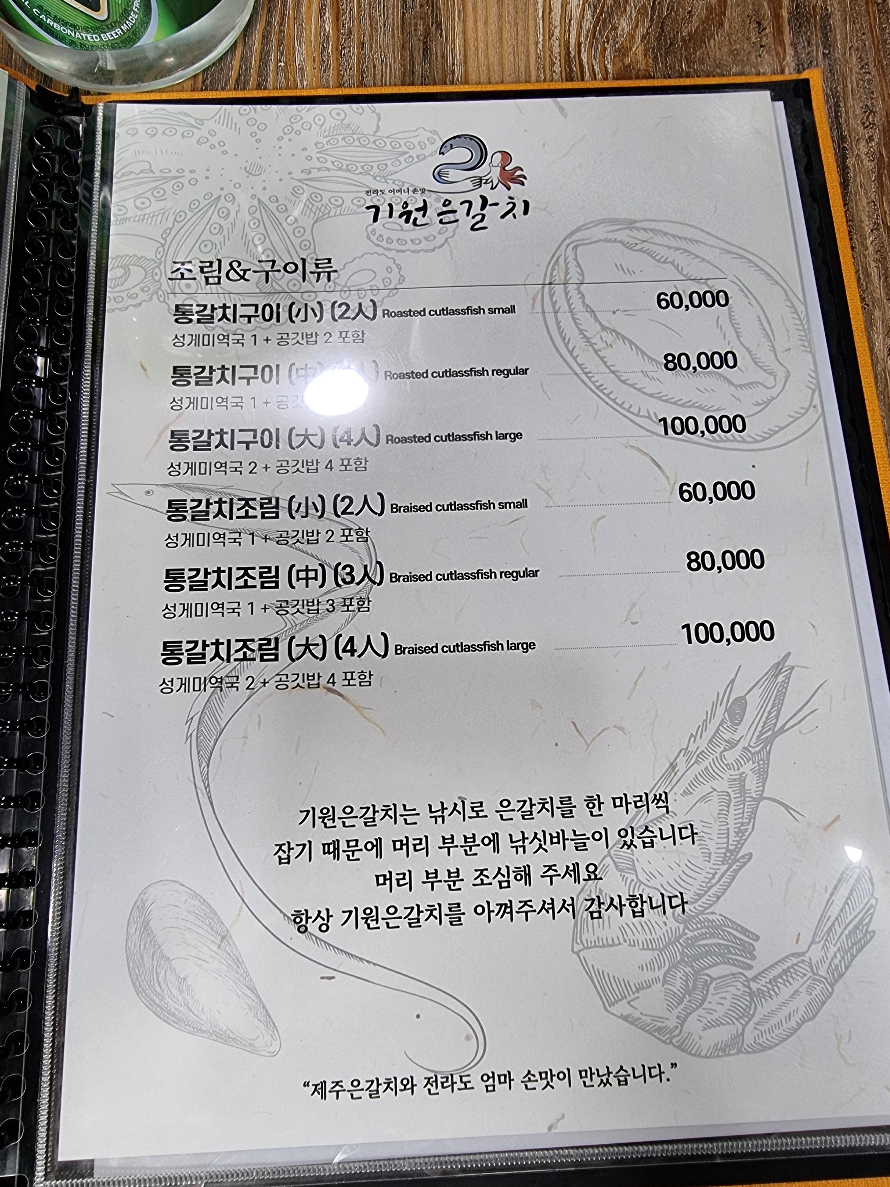 기원은갈치 메뉴판이에요.