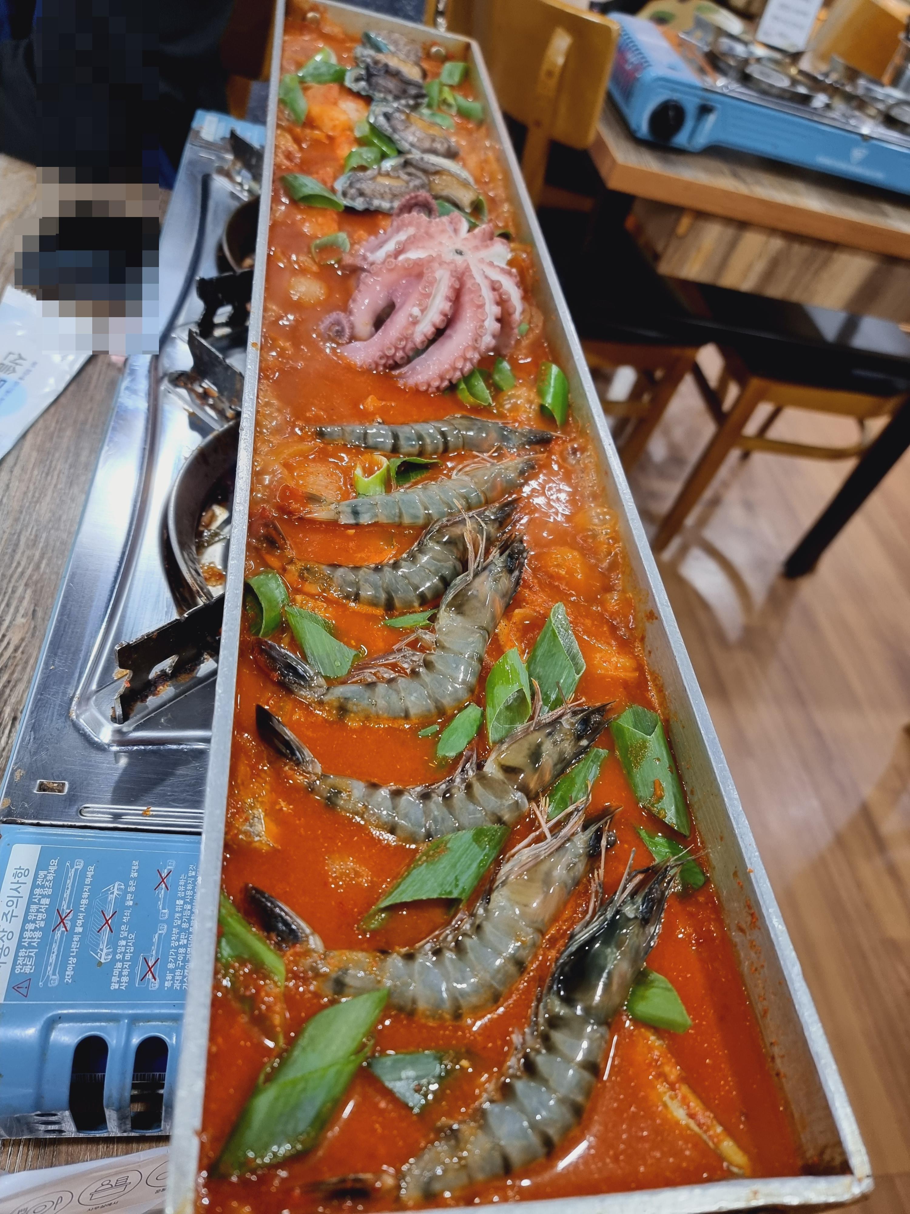 철판에 수북하게 담긴 해산물은