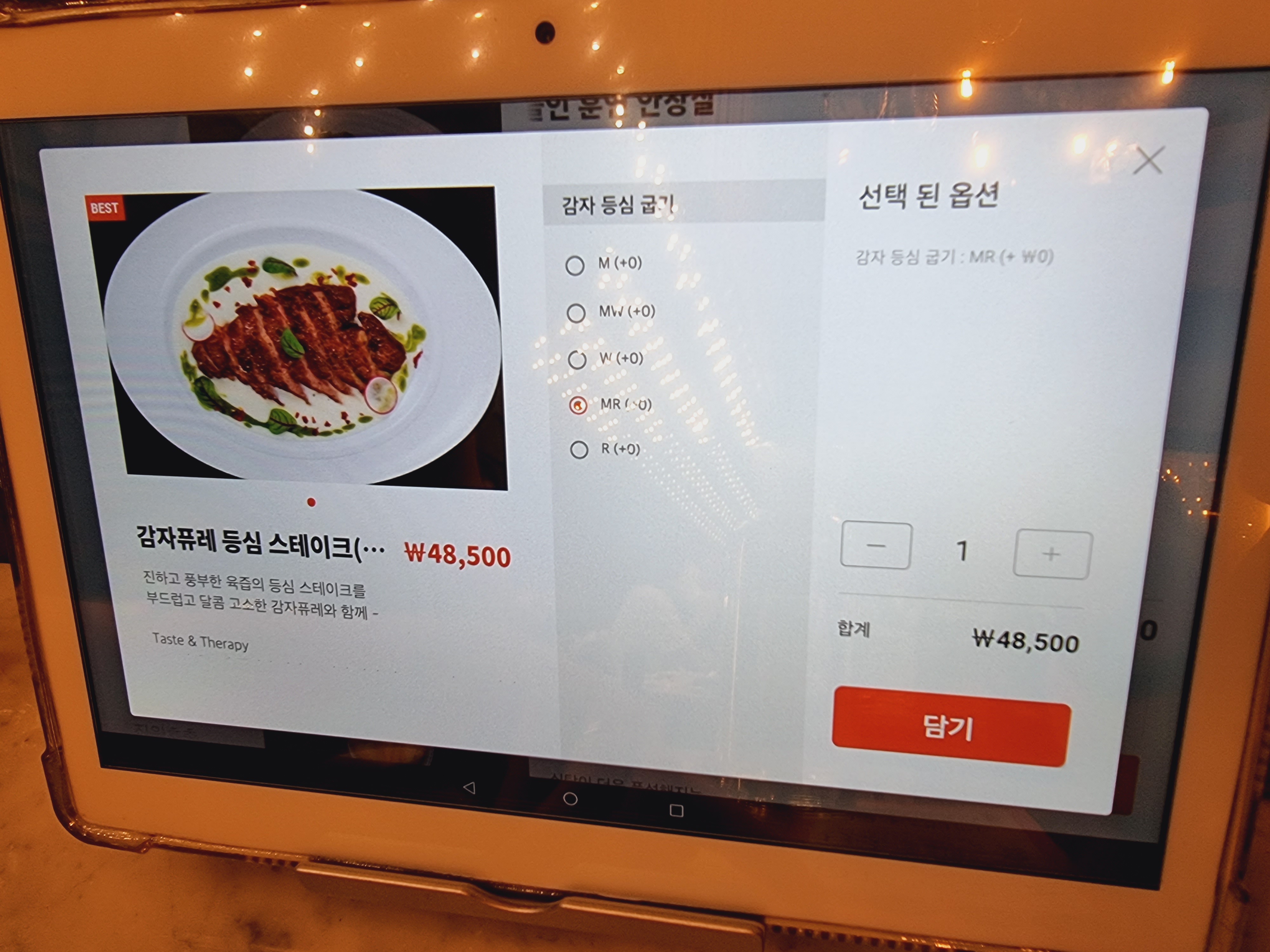 저희는 그냥 감자퓨레 스테이크(48,500)와