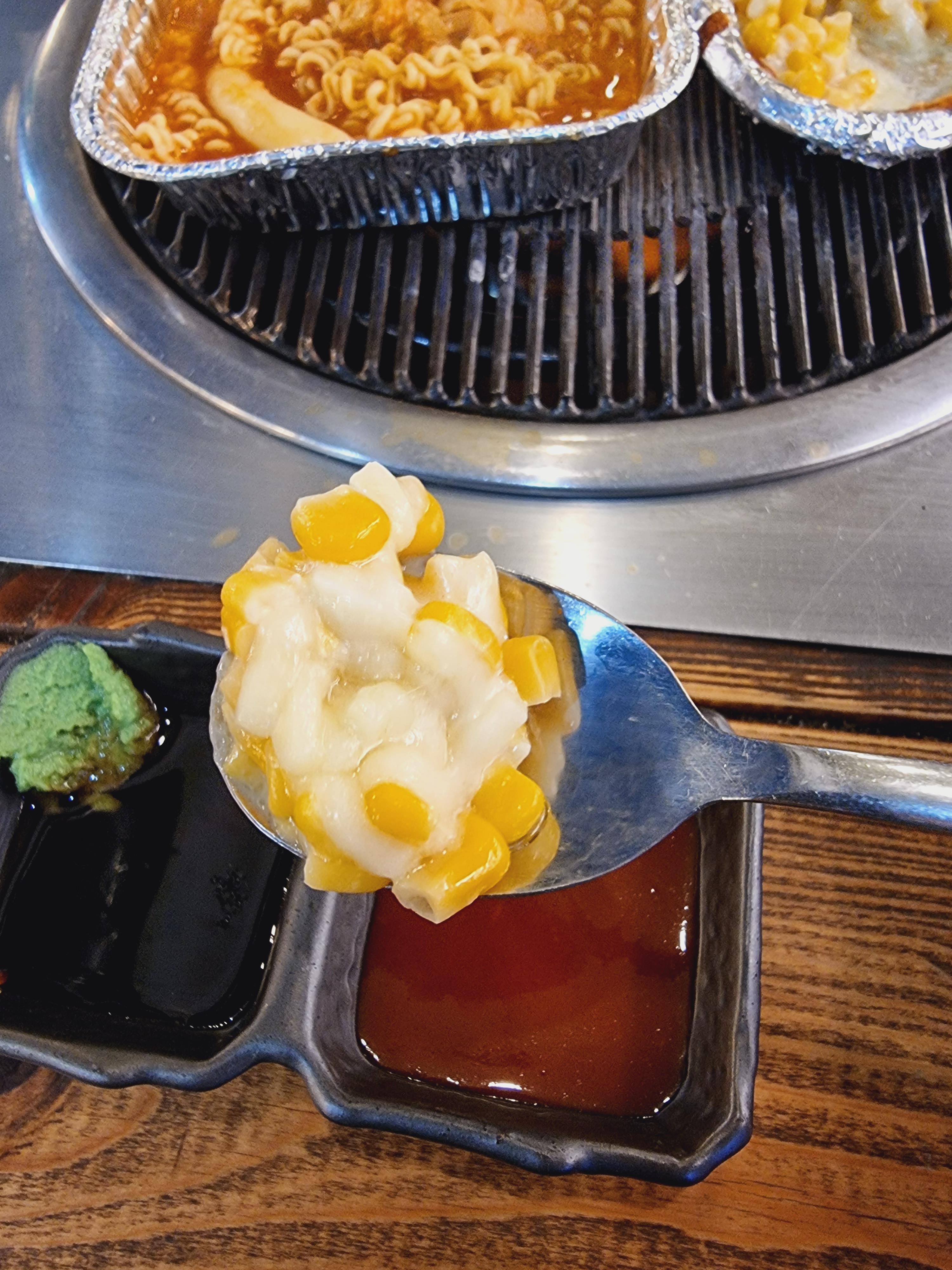 콘치즈와 라볶이가 나왔는데 순간 조개구이나