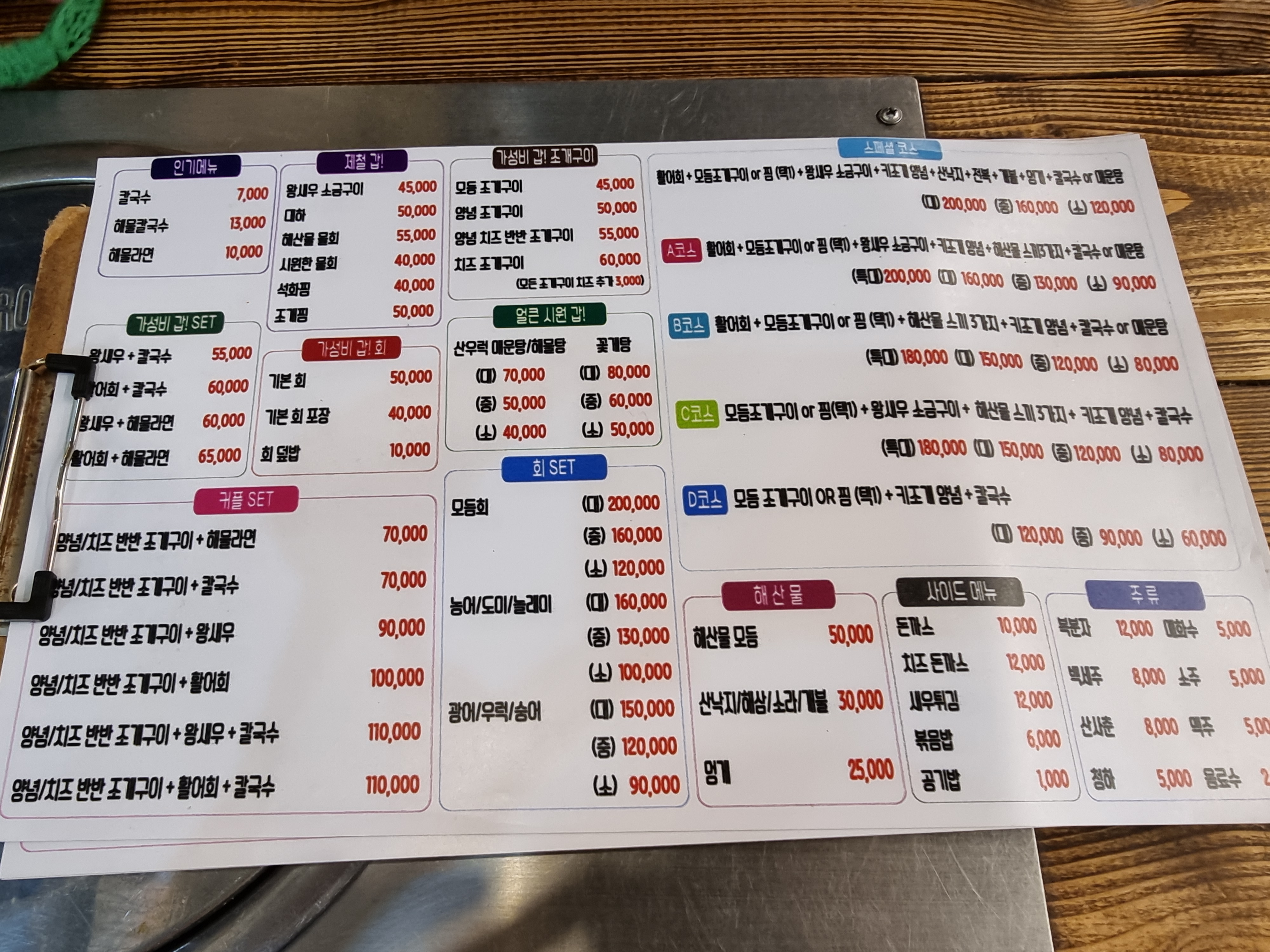 해품가 메뉴판은 크기부터가 다르더라구요 ㅋㅋ