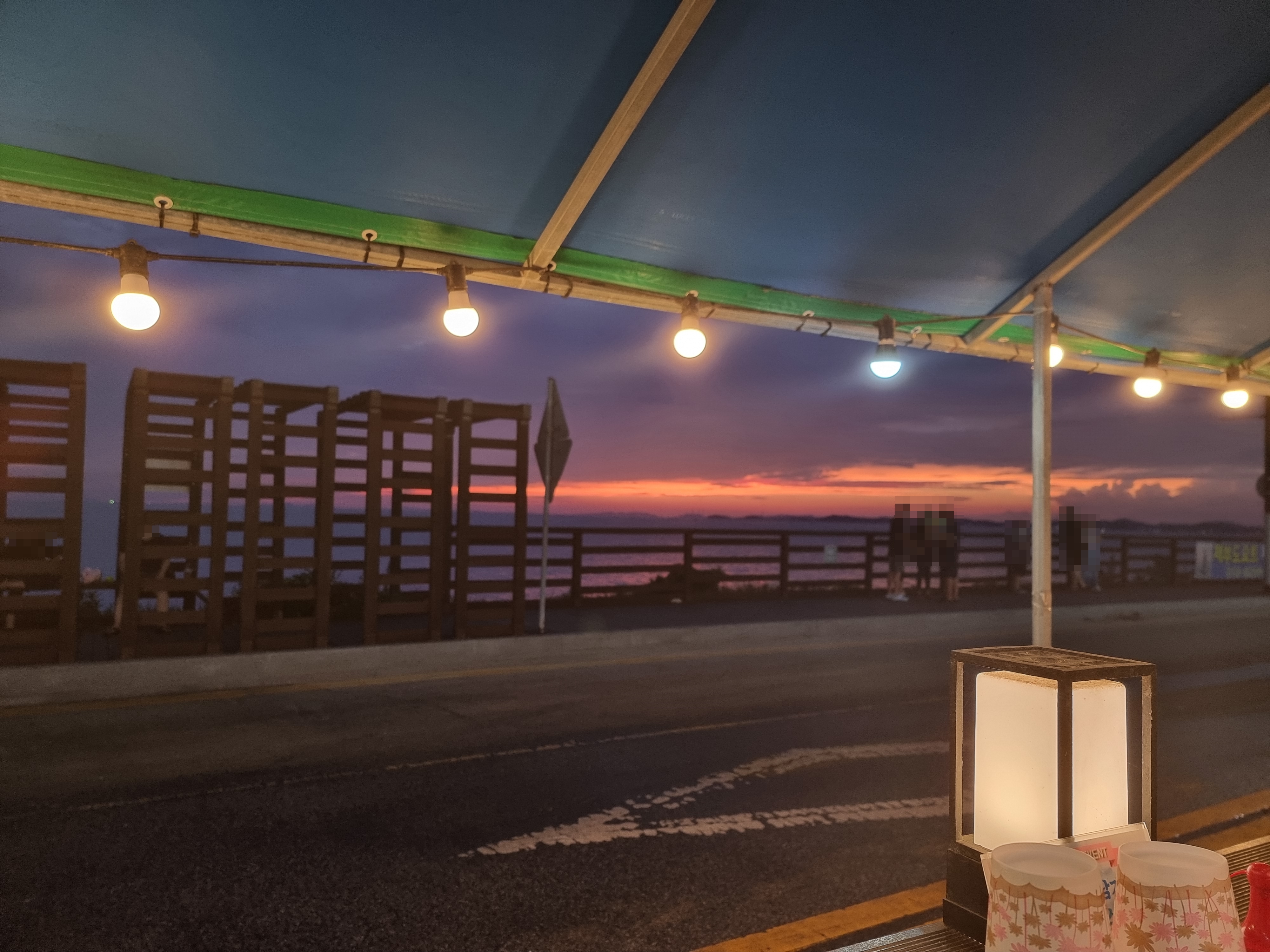 바다가 보이는 곳에서 앉아 조개구이를 먹으면